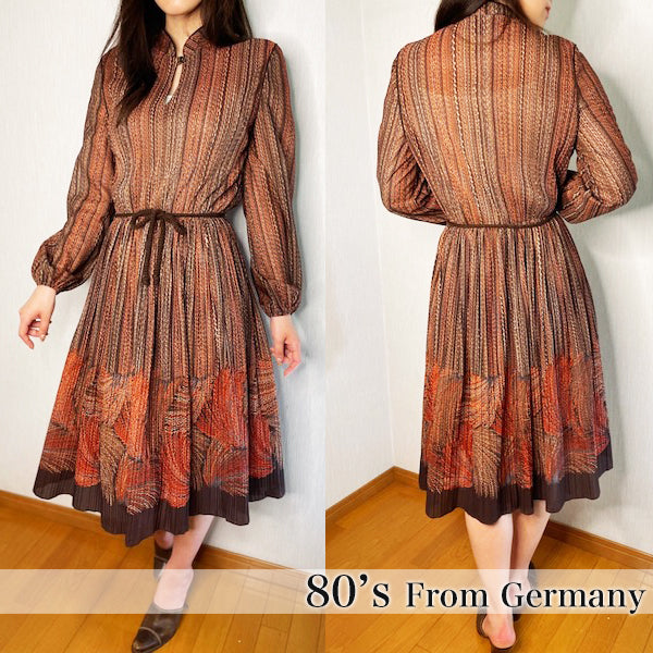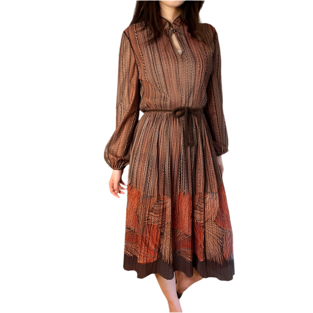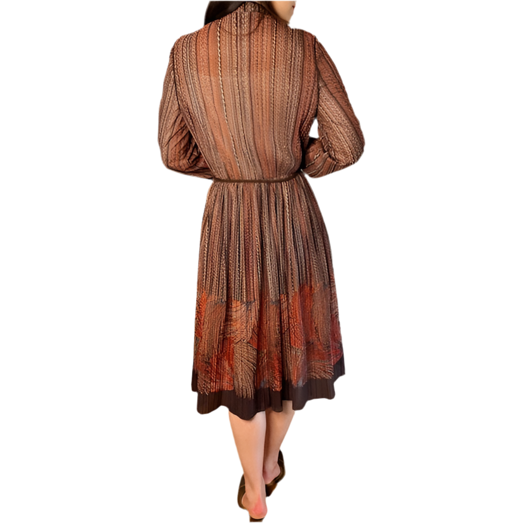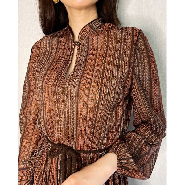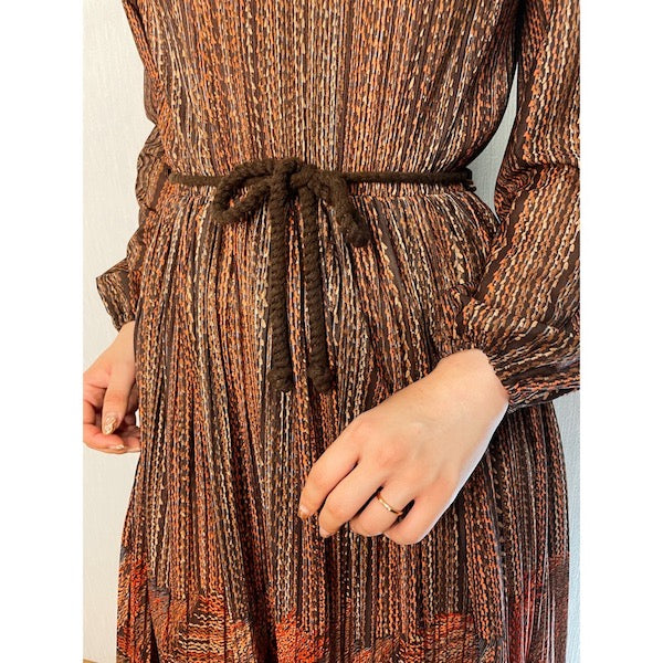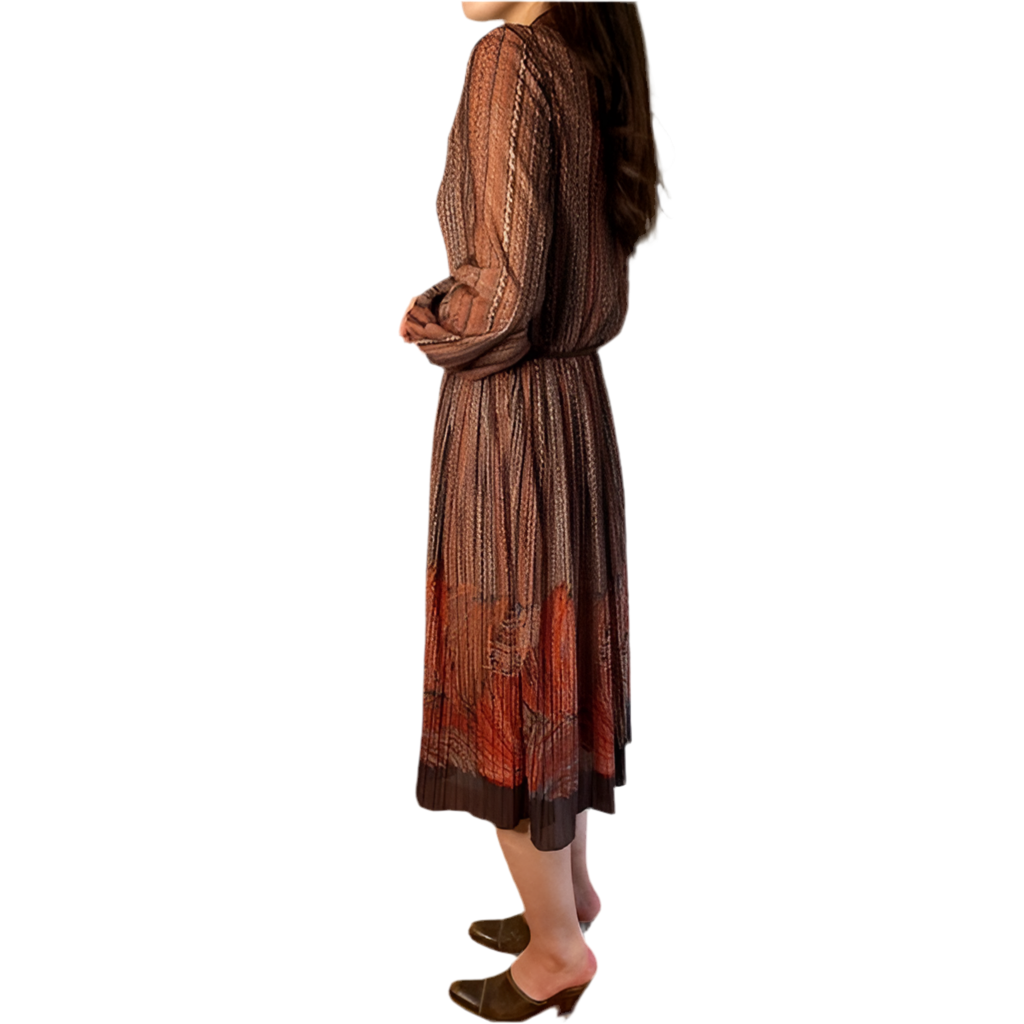Rococo's SELECT プリーツプリントvintageシフォンワンピース(茶系)
