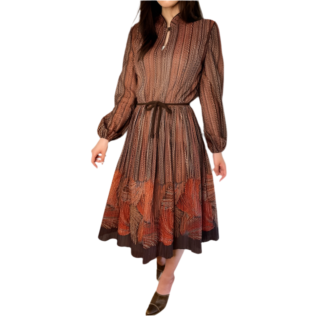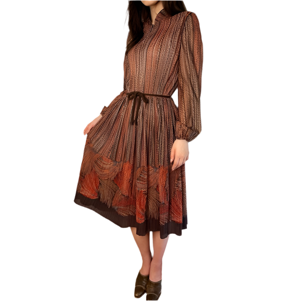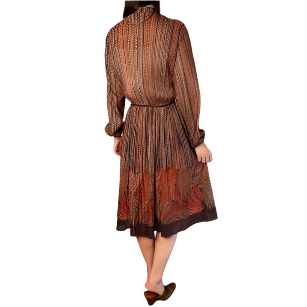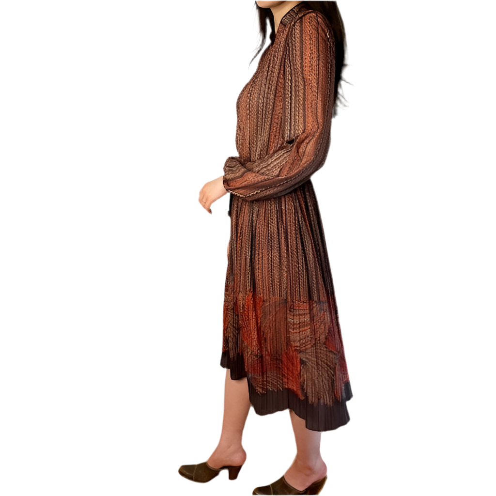 Rococo's SELECT プリーツプリントvintageシフォンワンピース(茶系)