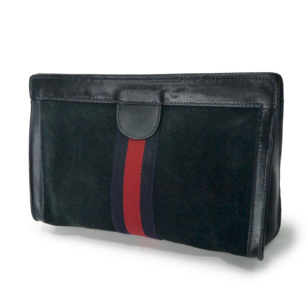 オールドグッチ スエード スエードレザー シェリークラッチバッグ(濃紺)