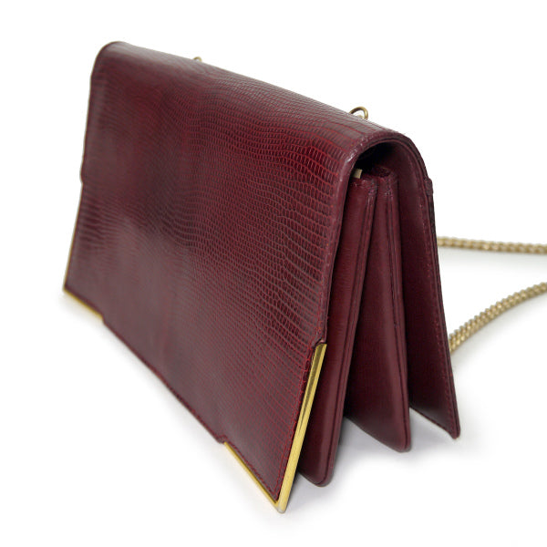 OLD Gucci70sリザード革チェーンバッグ(ボルドー)