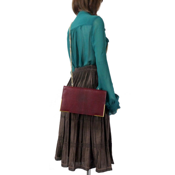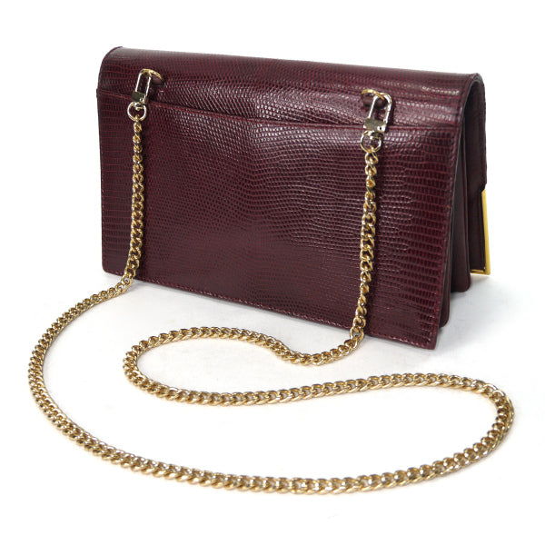 オールドグッチ 高級リザード革チェーンバッグ(ボルドー)