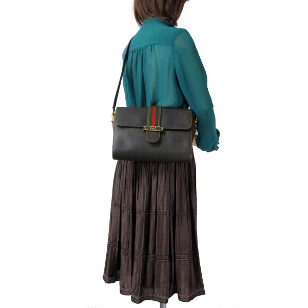 オールドグッチ ピグスキンレザー シェリーショルダー(茶)