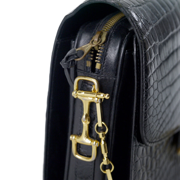 オールドグッチ 激レア!!サイドビットシェリー金具クロコチェーンバッグ(黒)