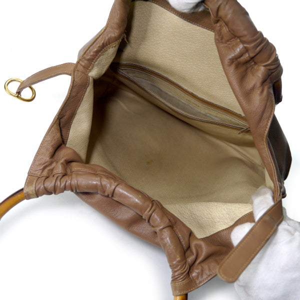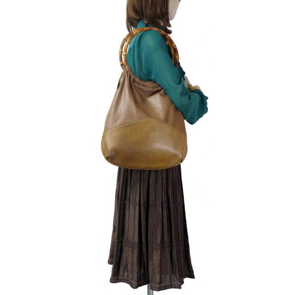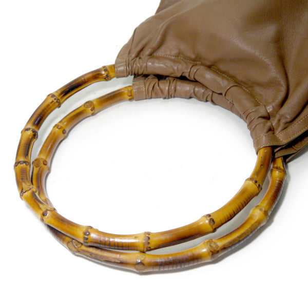 OLD Gucci バンブーサークルハンドル総革バッグ(茶)