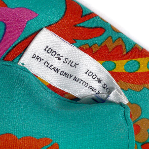 鮮やかなエメラルドグリーンにオレンジのペイズリー 柄が素敵な一枚!