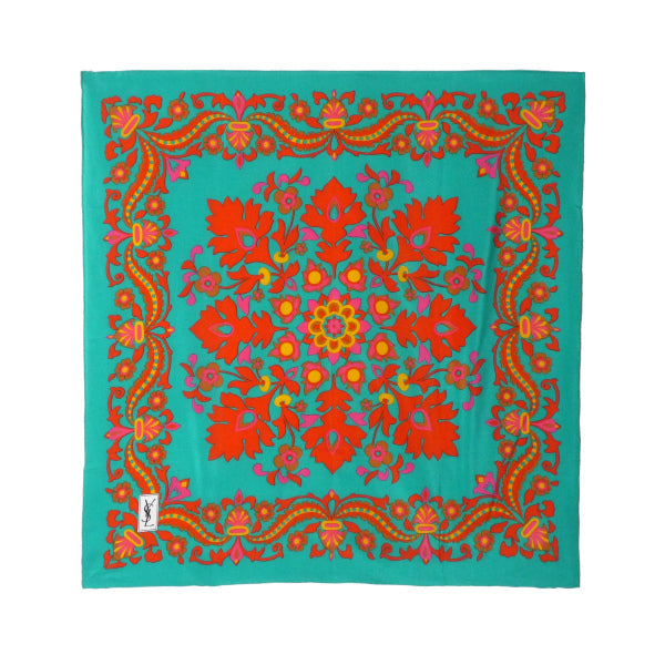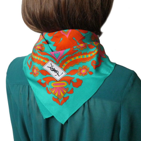 YVES SAINT LAURENT ペイズリー柄シルク中判スカーフ(エメラルド)