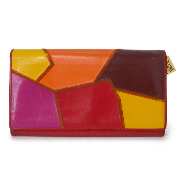 YVESSAINTLAURENT レザー切り替え長財布(赤系)