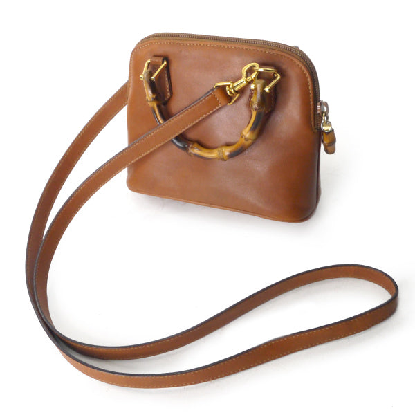 OLD Gucci バンブー総革2WAYミニバッグ(茶)