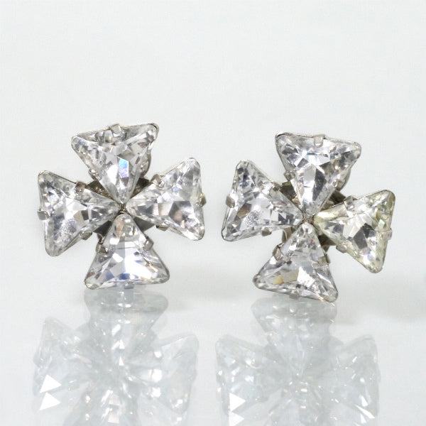 大粒ラインストーンがクローバーのようにデザインされたキラキラの素敵なイヤリング♪