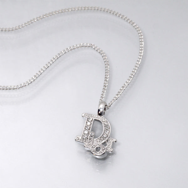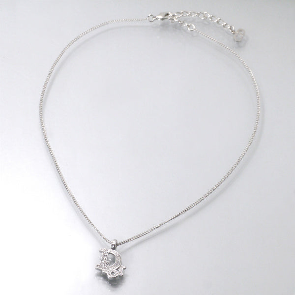 C.Dior ラインストーンロゴモチーフネックレス(シルバー)