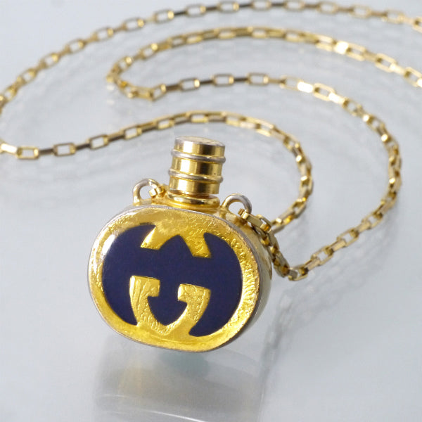 オールドグッチ GGマーク香水ボトル ペンダント(青/ゴールド)