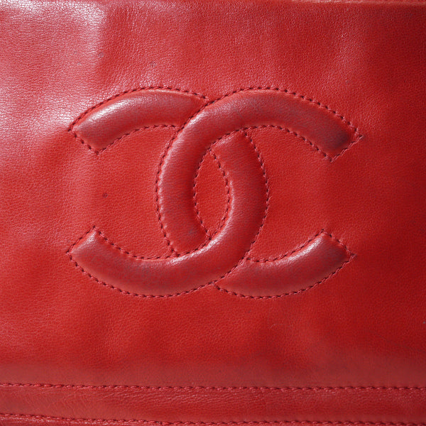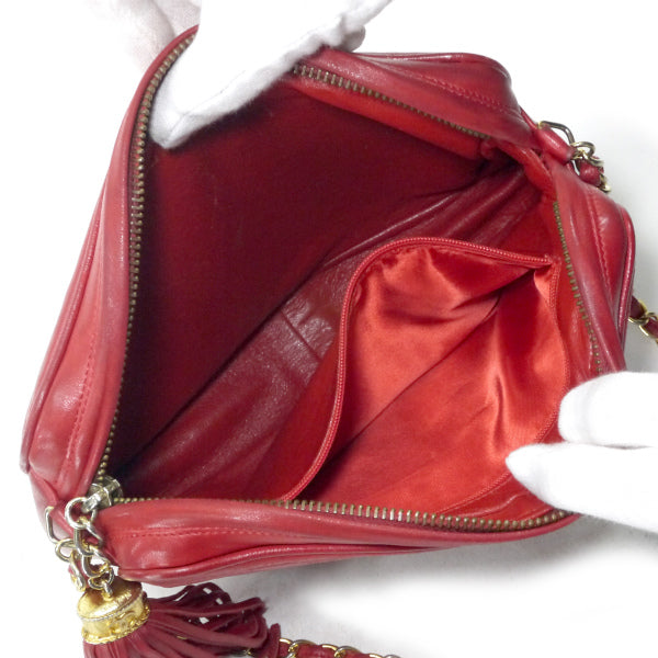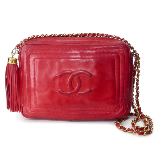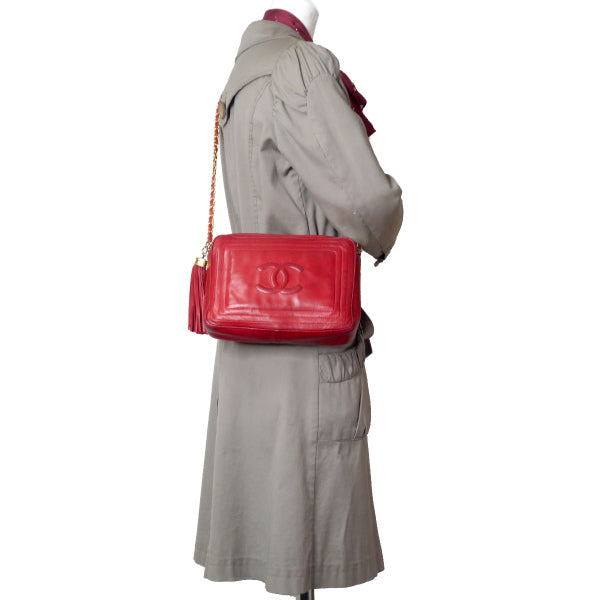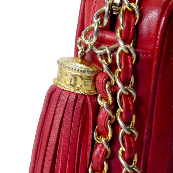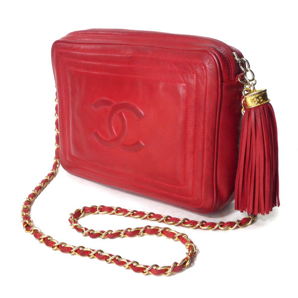 ヴィンテージシャネル ココマークステッチフリンジチェーンバッグ(赤)