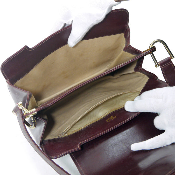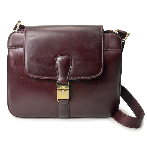 オールドグッチ 総革ロゴ金具スクエアショルダー(ボルドー)