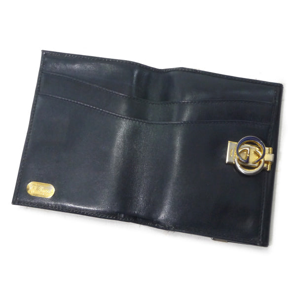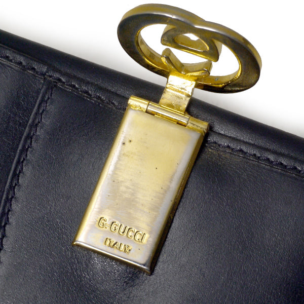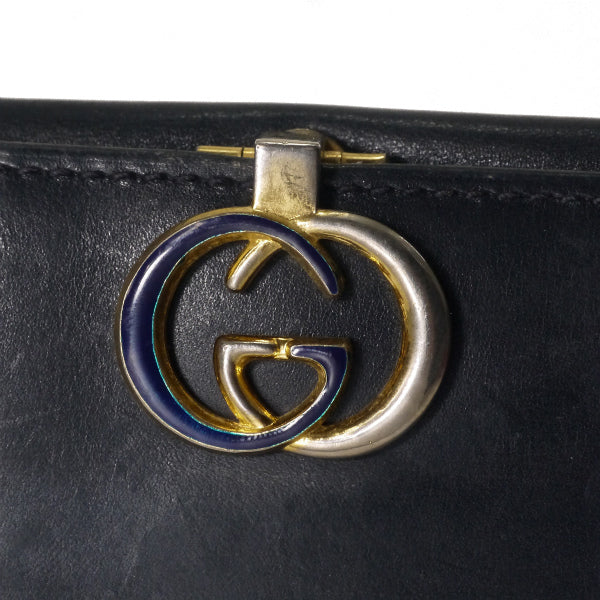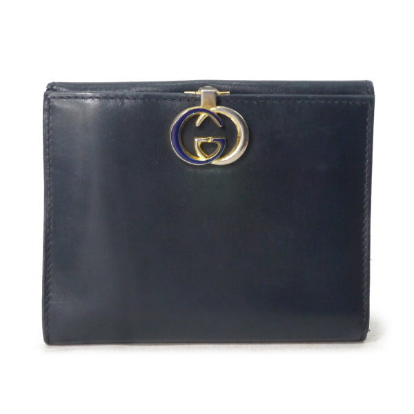 オールドグッチ GG留め具レザー2つ折れ財布(濃紺)