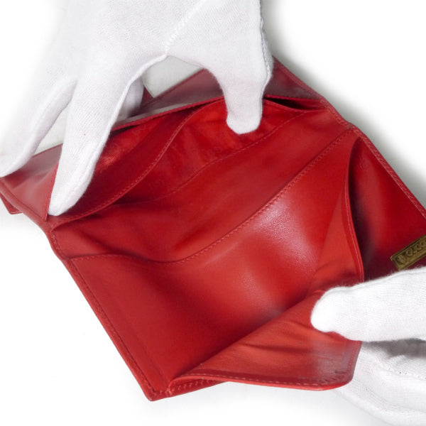 オールドグッチ GG留め具シュリンクレザー Wホック長財布(赤)