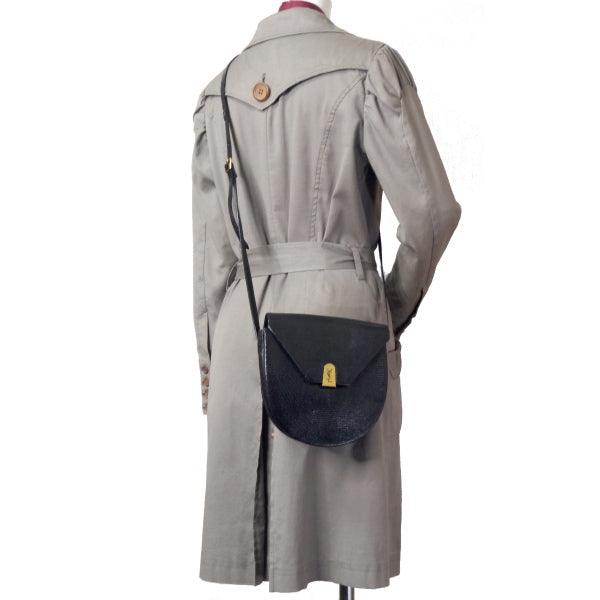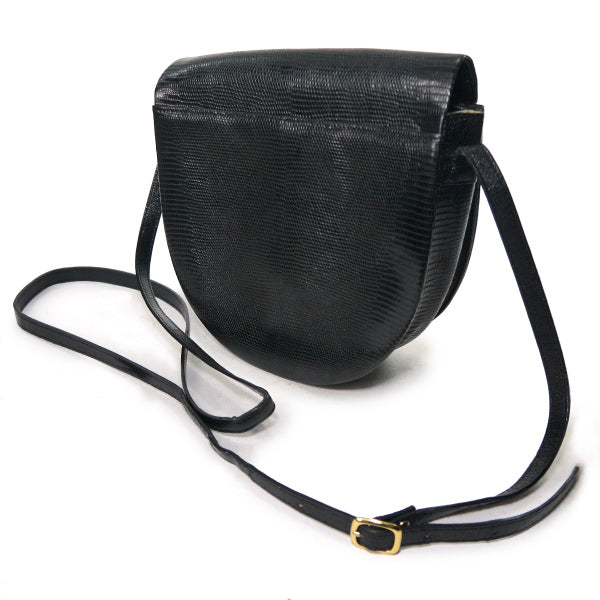 YVES SAINT LAURENT ロゴプレート リザードミニショルダー(黒)