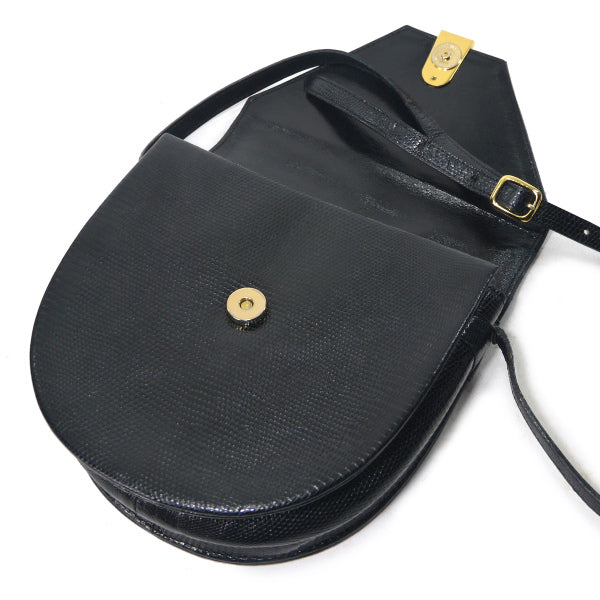 イブ サンローラン ロゴプレート リザードミニショルダー(黒)
