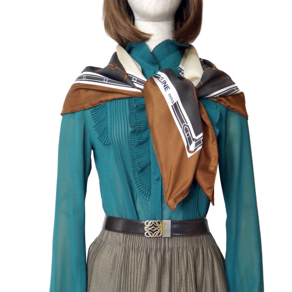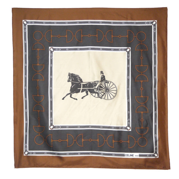 OLD CELINE 馬車×ビット柄 大判スカーフ(茶系)