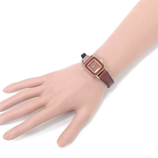 イヴ サンローラン レザーロゴスクエアフェイスウォッチ(赤茶)