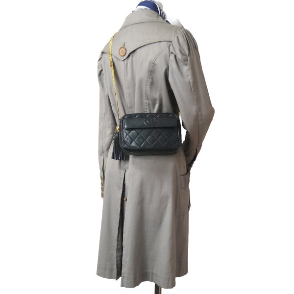 CHANEL レア!ココマークステッチ 4連チェーンフリンジバッグ(黒)