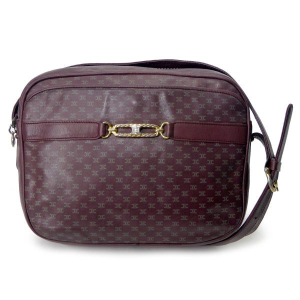 オールドセリーヌ レトロ!マカダム柄ロゴ金具ショルダー(ボルドー)