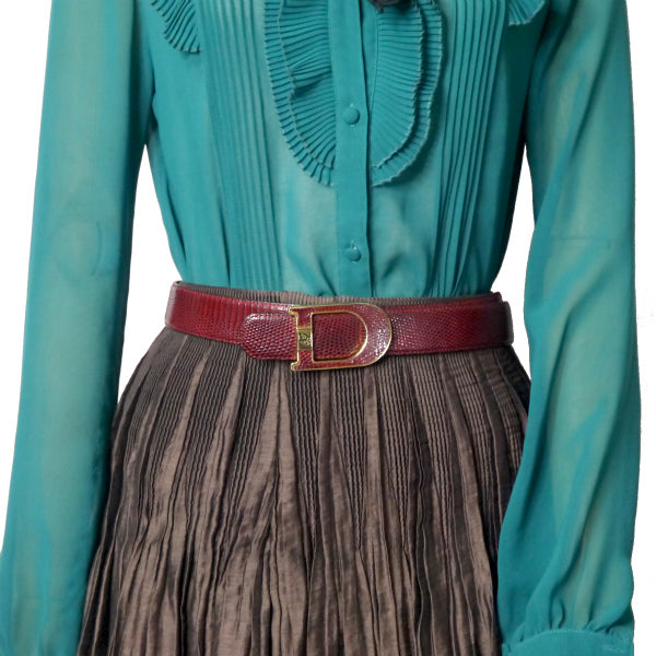 OLD Dior Dバックル リザードレザーベルト(ボルドー)