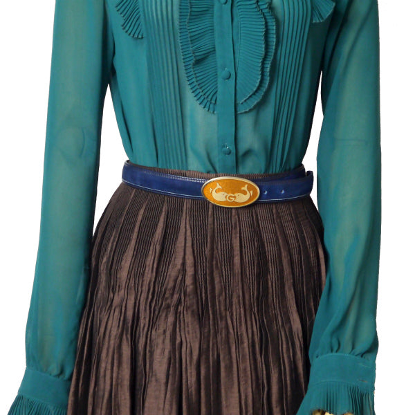 オールドグッチ レア!クジラGバックル スエードベルト(青)