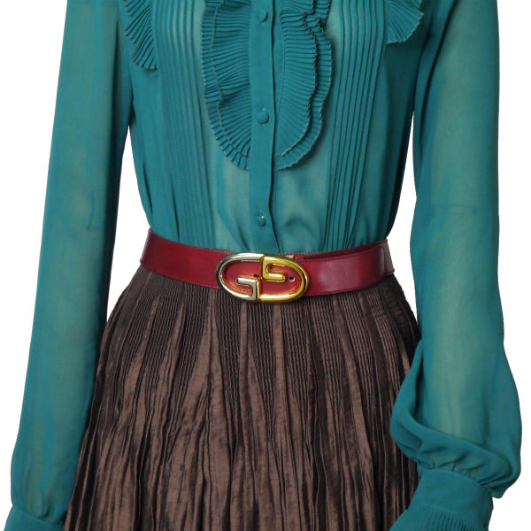 オールドグッチ GGバックル本革レザーベルト(ボルドー)