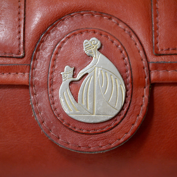 ヴィンテージ ランバン ロゴプレート総革ショルダー(赤)