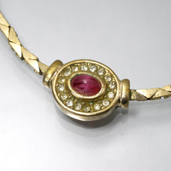中央にピンクボルドー、周りにクリスタルストーンが輝くコスチュームジュエリー!