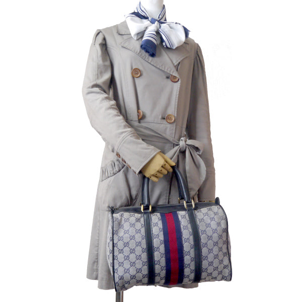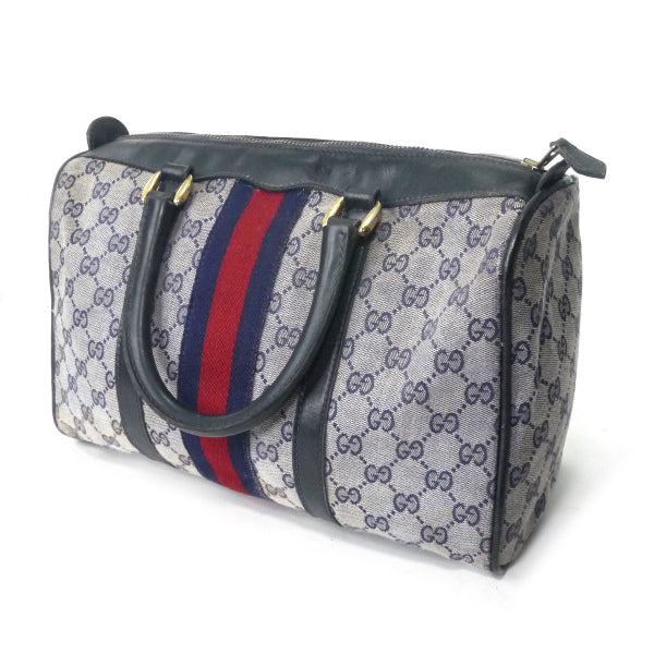 OLD Gucci 革2本シェリー ジャガードボストン(青/中)