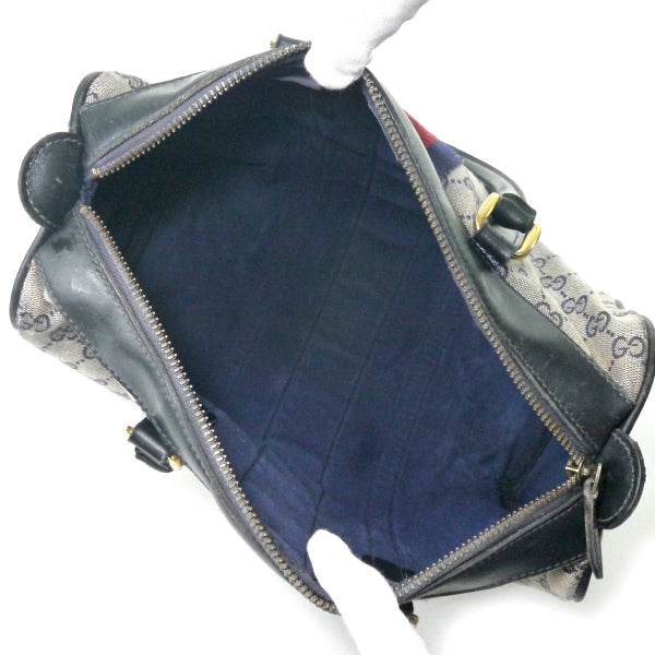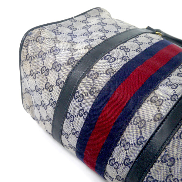 オールドグッチ 革2本シェリー ジャガードボストン(青/中)