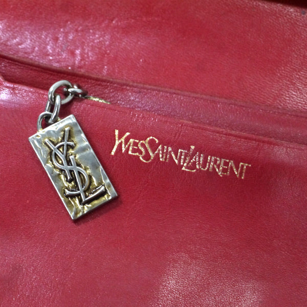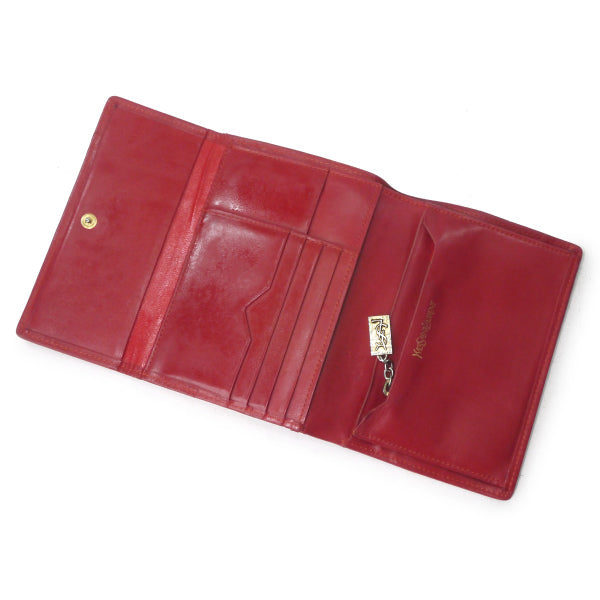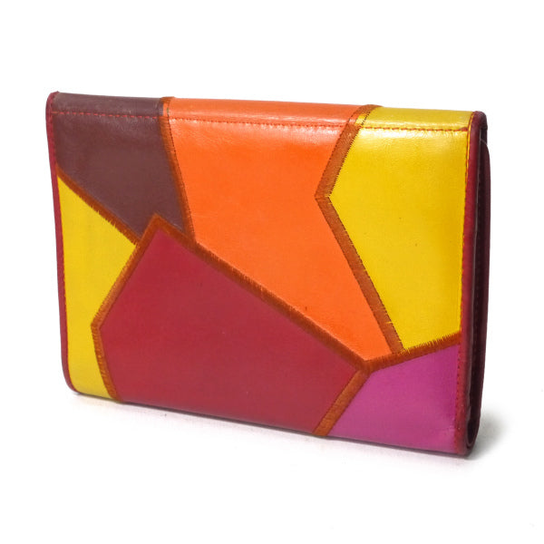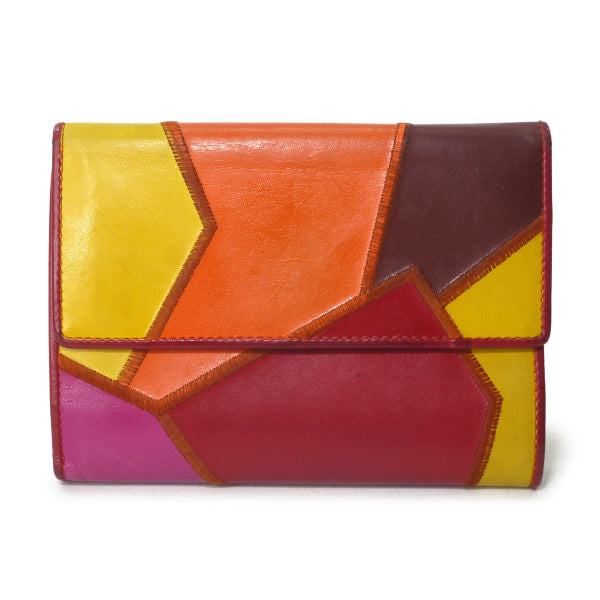イヴサンローラン 本皮パッチワーク財布(赤系)