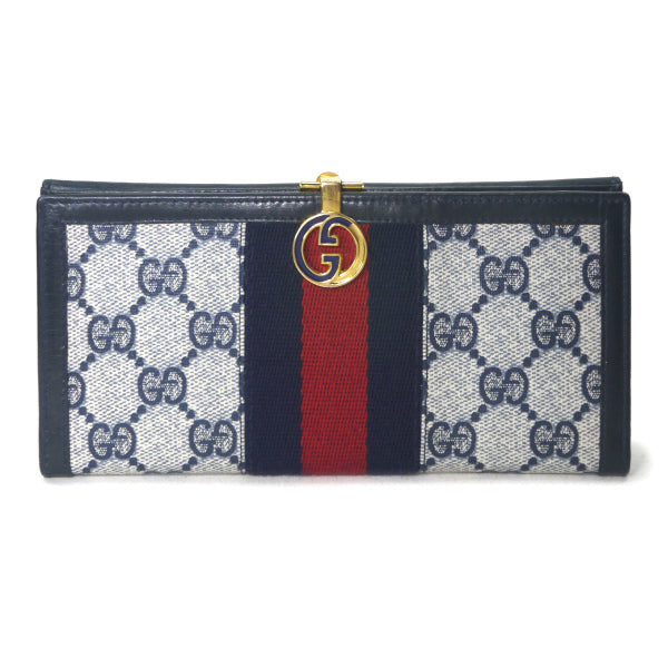 オールドグッチ 80sデッドストック横長財布(青・GG柄)
