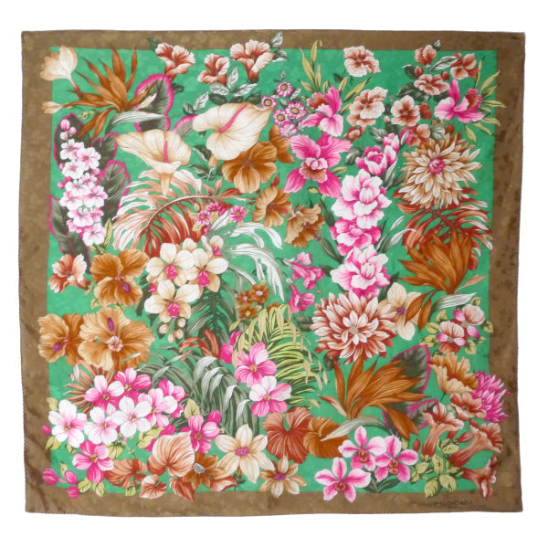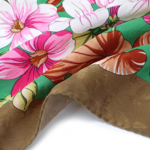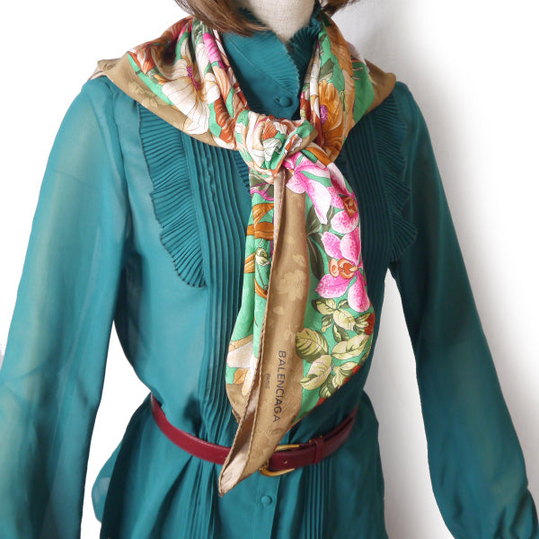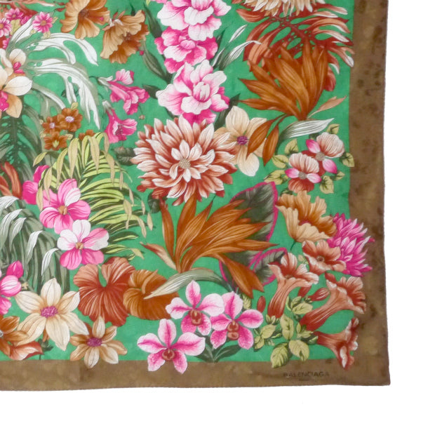バレンシアガ フラワー柄 大判シルクスカーフ(ゴールド・グリーン・ピンク系)
