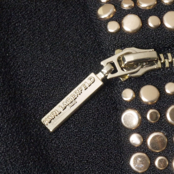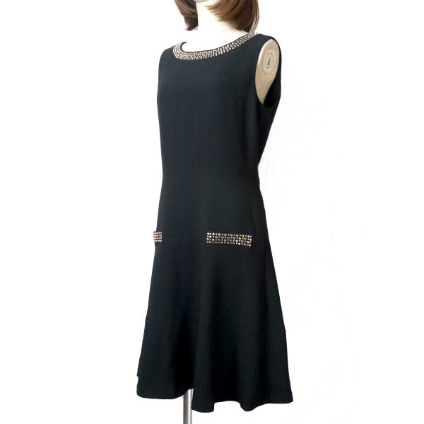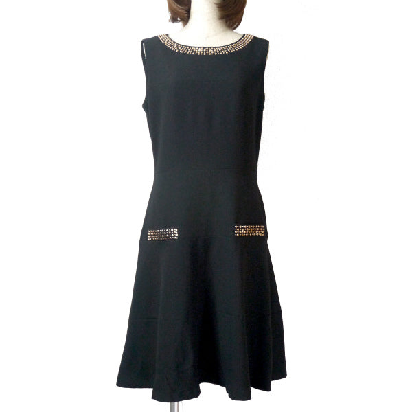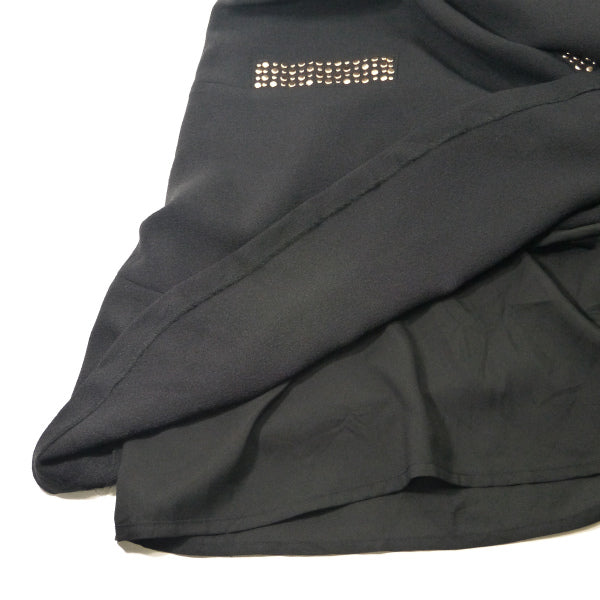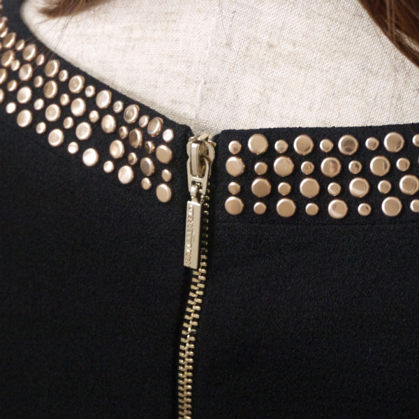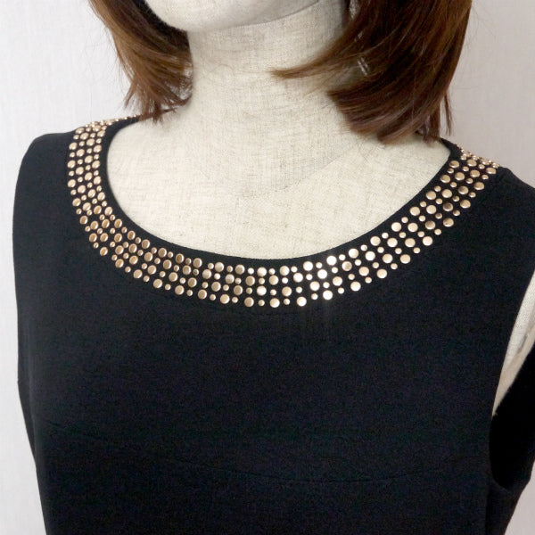 落ち感のある中肉の上質ジョーゼットで、スタッズ飾りがカジュアルながら