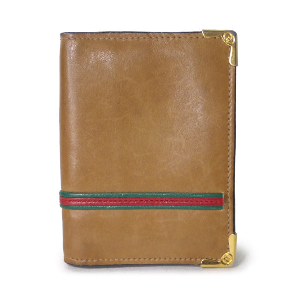 オールドグッチ 70sシェリーライン本革手帳ケース(キャメル)