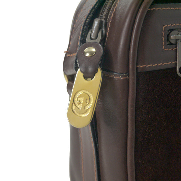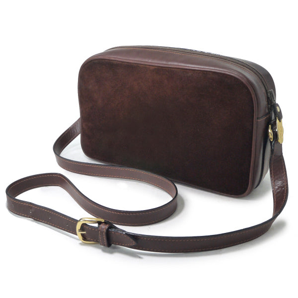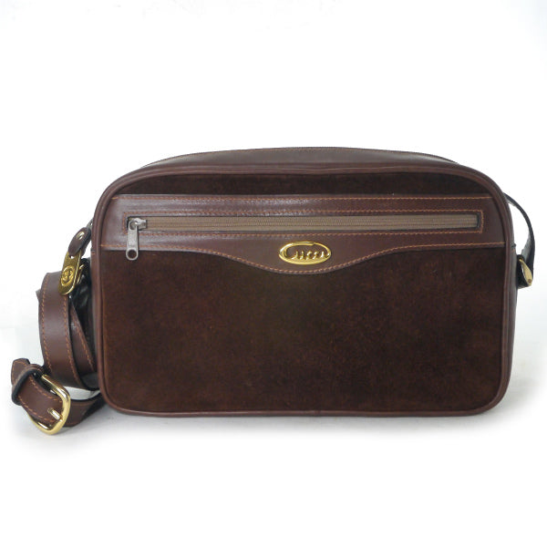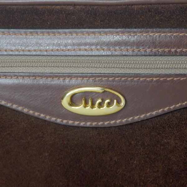 OLD Gucci 筆記体ロゴ金具 スエードショルダ−(茶)