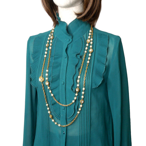 オールド ヴィンテージシャネル パール3連ネックレス(ゴールド)