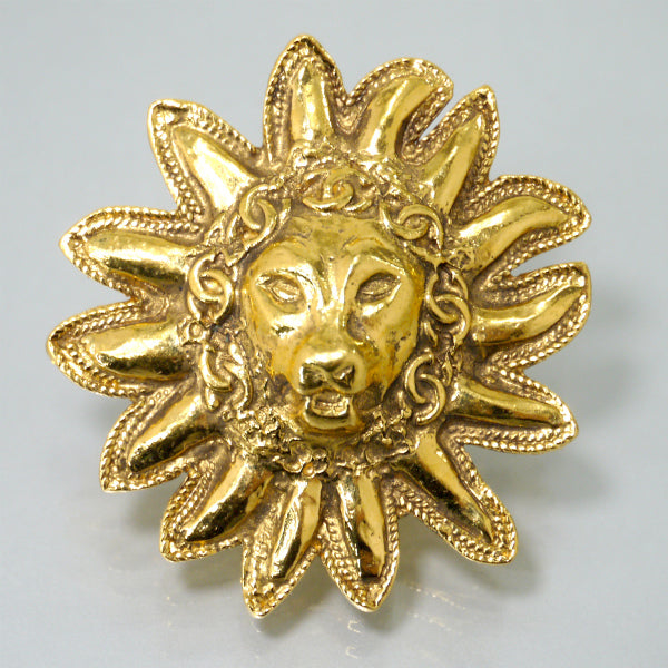 CHANEL ライオン サンモチーフ ブローチ/ゴールドトーン金具/Made in France/ヴィンテージ(1990年代推定)