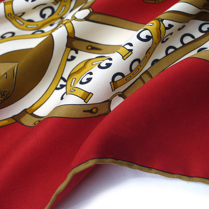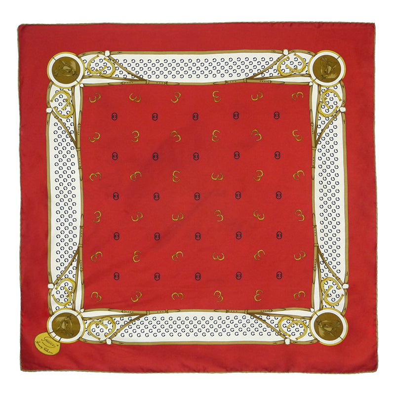 OLD Gucci 80sシルクスカーフ(赤/ホースシュー柄)