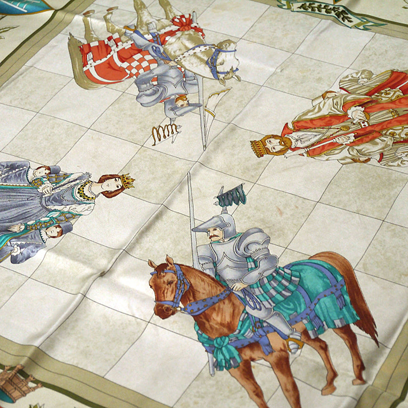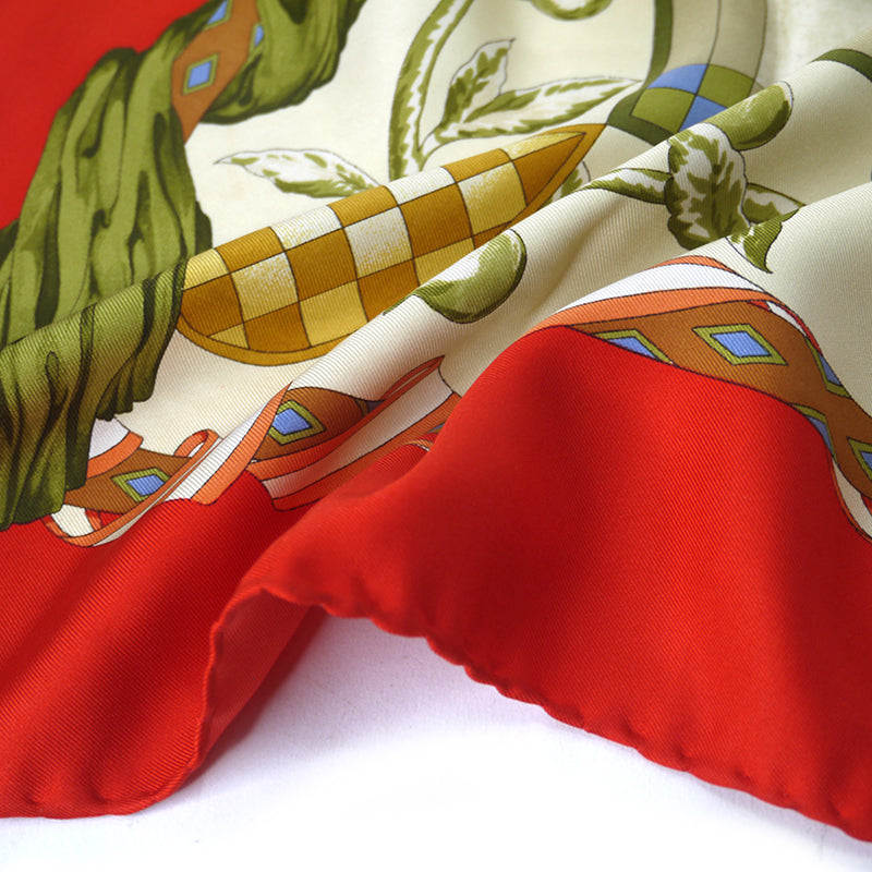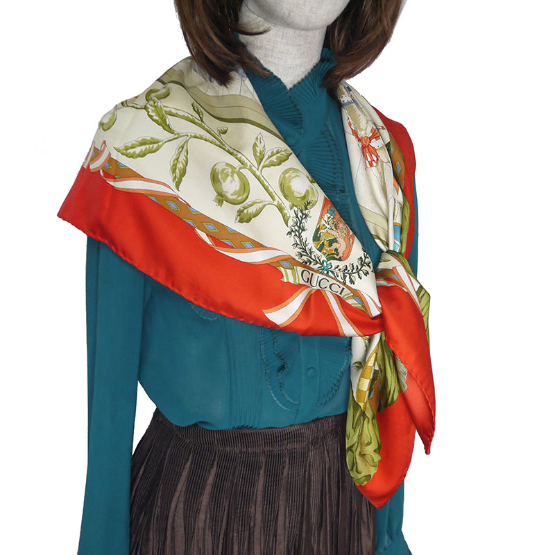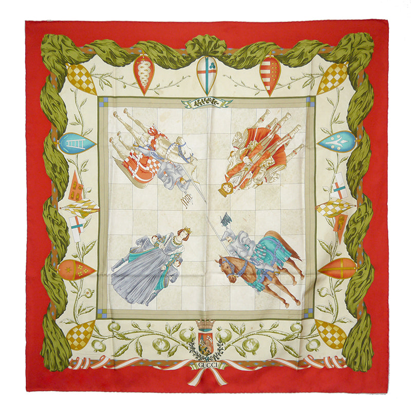 OLD Gucci 80sシルクスカーフ(赤・ベージュ/王族柄)