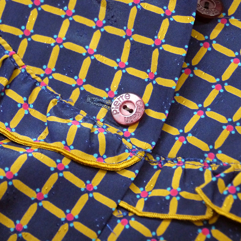 pierre cardin プリントブラウス(黒・ベージュ)