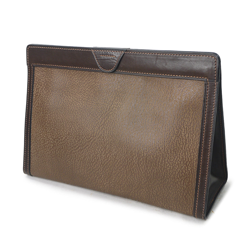マジックテープで大きく開いて使いやすく、雰囲気のある上品なアンティークなレザーコンビの逸品!