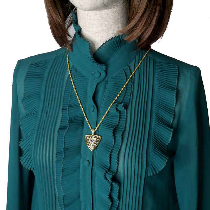 イブ サンローラン ジルコニア/トライアングル ネックレス (ゴールド)