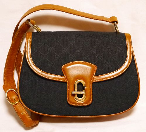オールドグッチ  黒×キャメル/クラシックショルダー