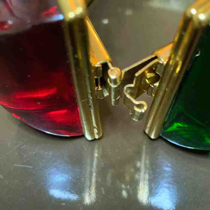 バネ式留め具・メタル構造 ヴィンテージグーセンスに典型的なディテール