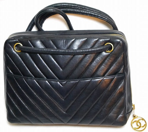 シャネルVライン2Wayバッグ(黒・カンボン)