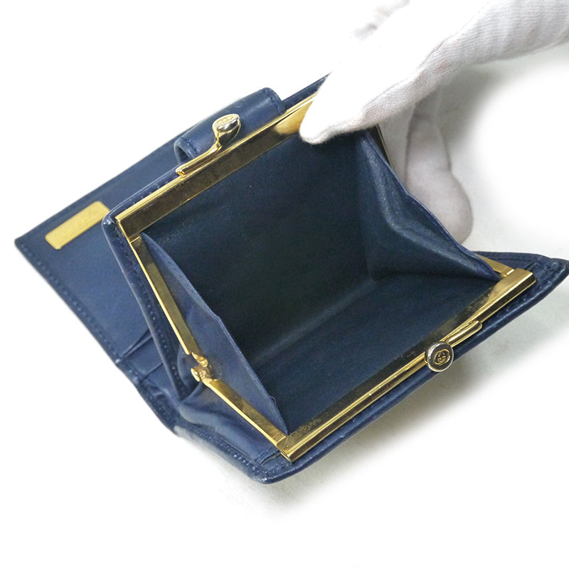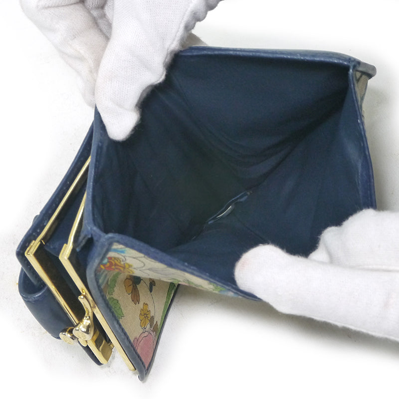 オールドグッチ フラワー柄2つ折れ財布(紺)