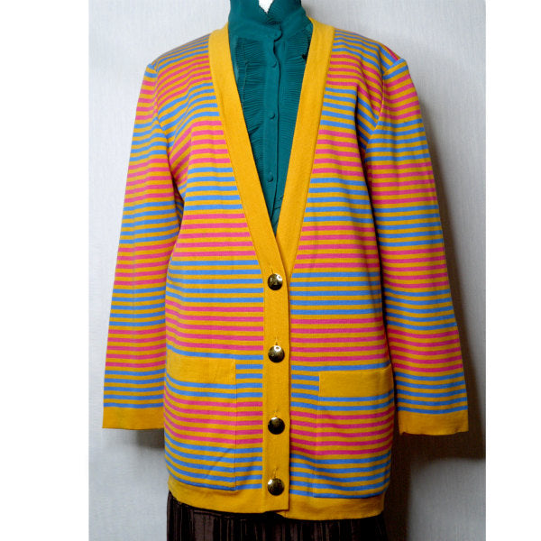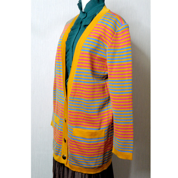 オレンジにピンクとブルーのボーダーがレトロポップなカーディガン☆